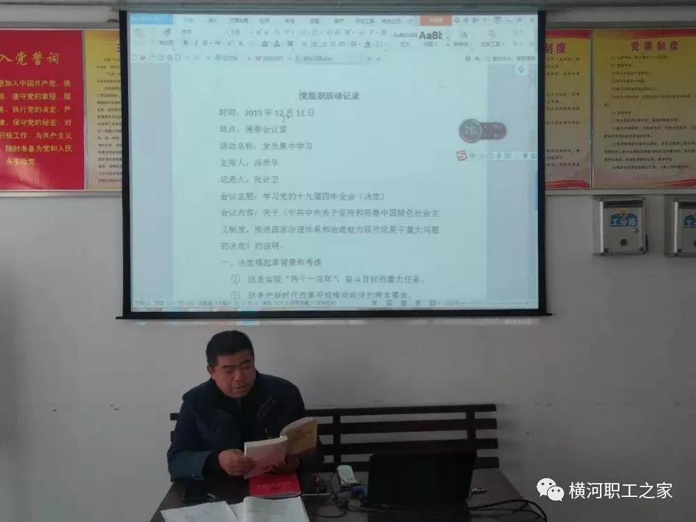 12月11日上午,横河钢厂党总支各基层党支部组织全体党员学习《党的十九届四中全会<决定>学习辅导百问》。