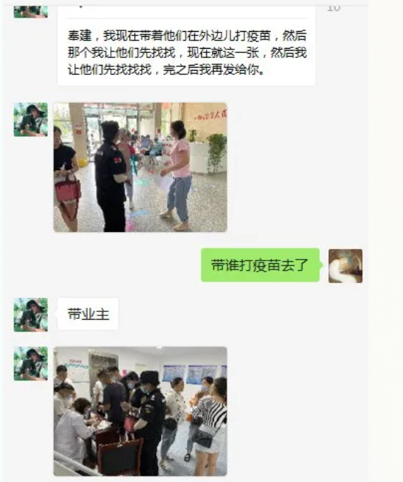 (图为:这个时候想找物业公司同事,她们不在检查接种情况的路上,就在带业主打疫苗的路上)