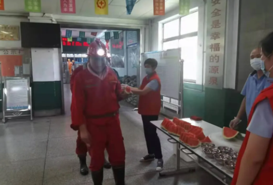 工作人员为职工送上清凉消暑的慰问品,并感谢他们在炎炎夏日依然坚守岗位,叮嘱他们要时刻紧绷安全弦,抓好安全工作,做好高温作业保护及消暑降温工作。