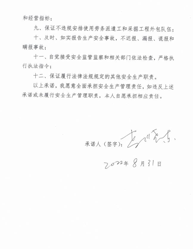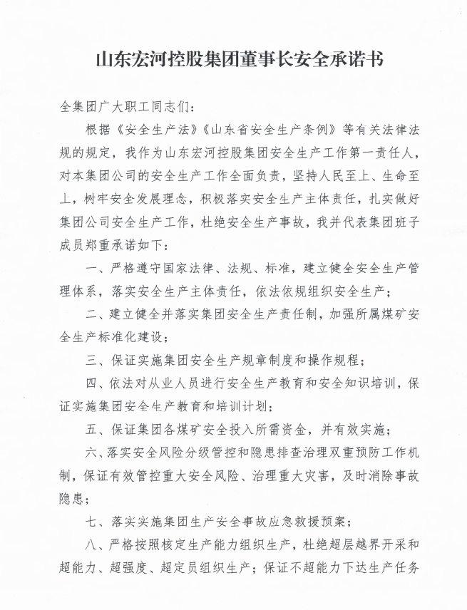 宏河aoa体育官网地址集团党委书记、董事长李晓东安全承诺书
