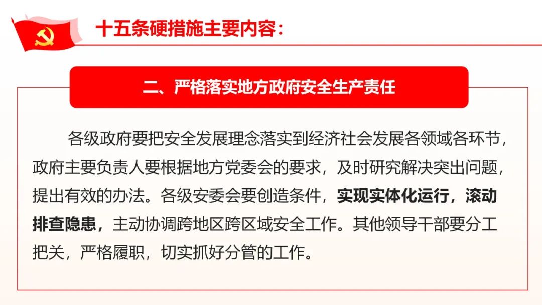 (二)地方政府安全生产责任落实情况。各级政府是否把安全发展理念落实到经济社会发展各领域、各环节,主要负责人是否根据地方党委会议的要求及时研究解决安全生产突出问题并主动协调跨地区、跨区域安全生产工作,其他领导干部是否切实抓好分管行业领域安全生产工作、安委办运行情况等。
